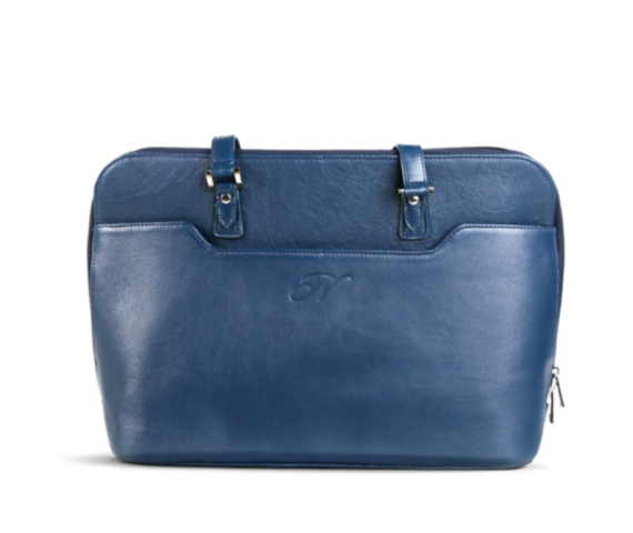 Laptop Bag. W395mm x H290mm x D135mm. Double handle domed zip closure outer slip pocket on the front outer zip pocket two large compartments middle compartment to hold a 15″ laptop one zip pocket one long slip pocket business card slip pocket cell phone slip pocket-with antique brass fittings.