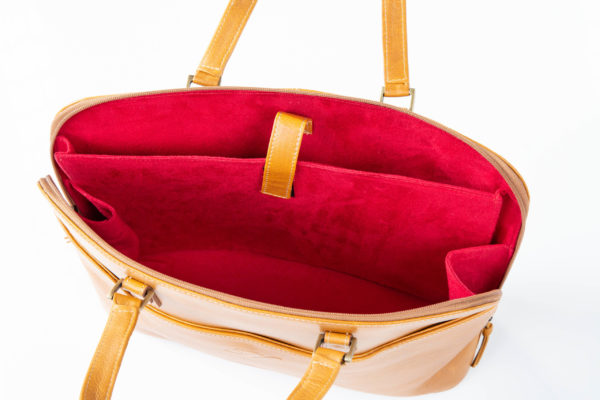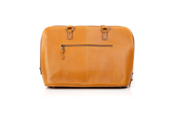 GENUINE LEATHER Laptop Bag. W395mm x H290mm x D135mm. Double handle domed zip closure outer slip pocket on the front outer zip pocket two large compartments middle compartment to hold a 15″ laptop one zip pocket one long slip pocket business card slip pocket cell phone slip pocket-with antique brass fittings.